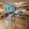 I have two upstairs rooms that share a full bath. One is still under construction Both have twin beds. chairs and tables. There is a dining area on the fist floor and I can share refrigerator space. The solitude here lends itself to personal retreats, but for now, kitchen facilities would be shared. It is only me here with two unfriendly cats, so being alone should be no problem.